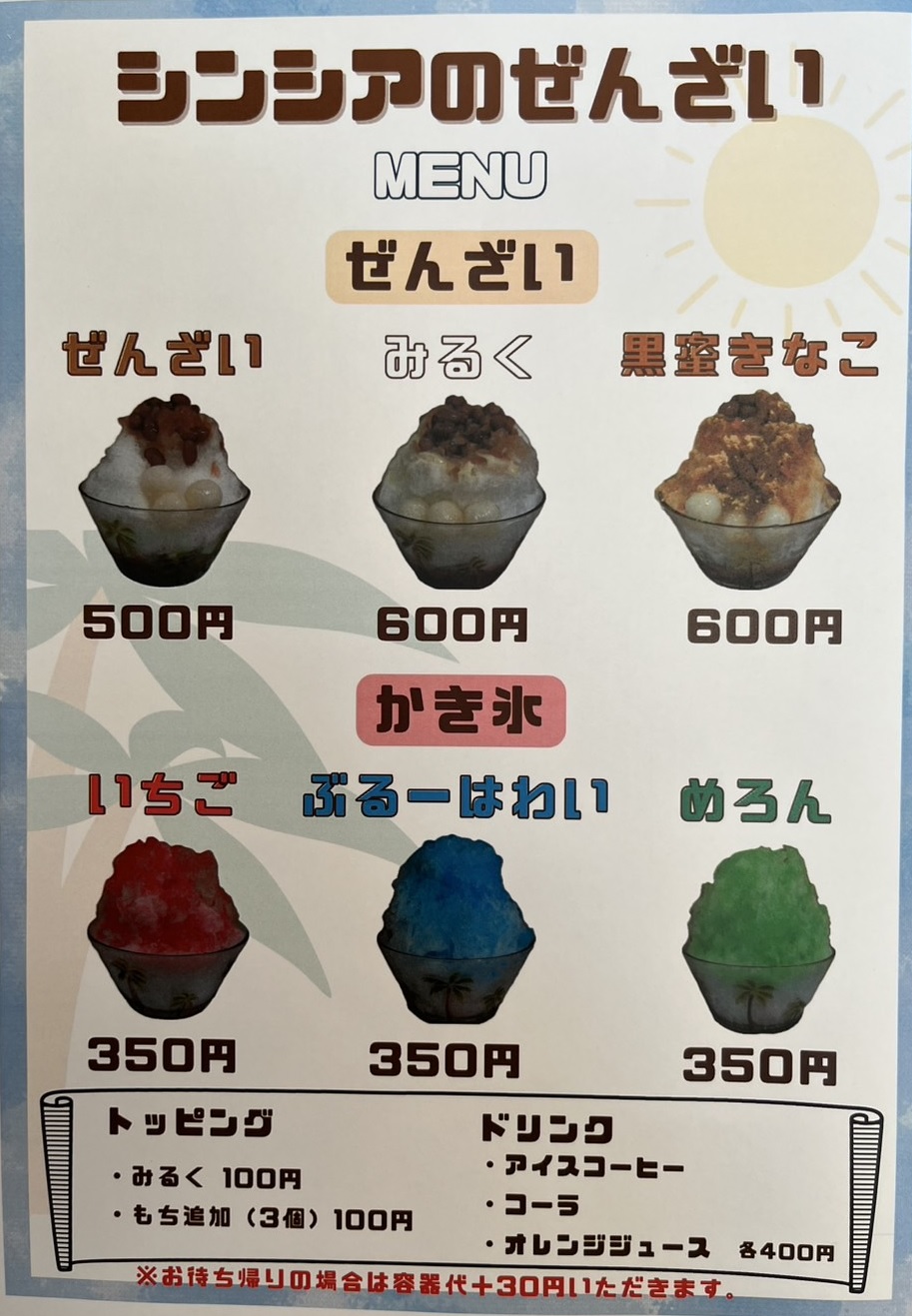 「令和7年6月1日(日)」から「シンシアのぜんざい」の営業を開始します。